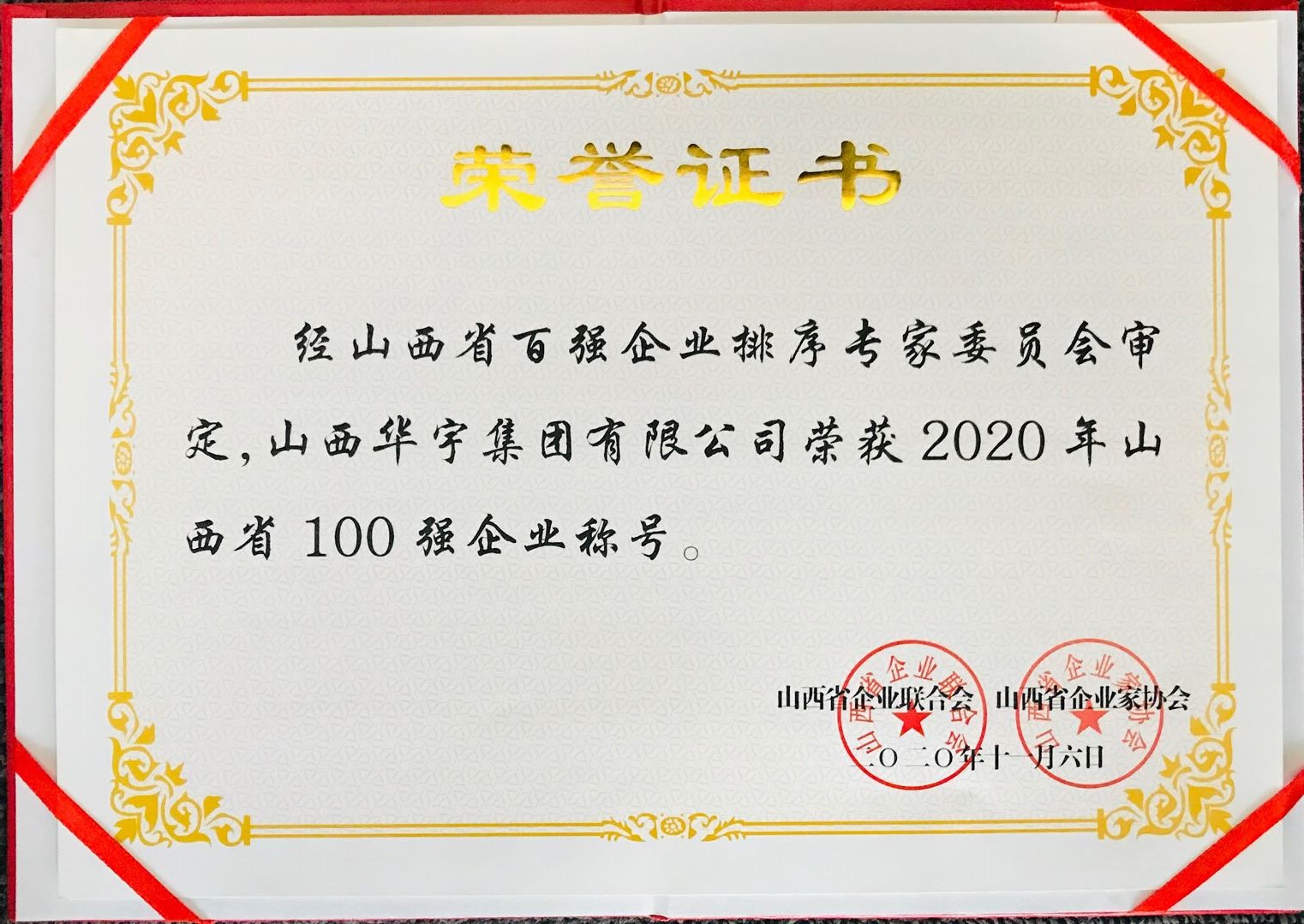 山西華宇集團再獲2020年山西省100強企業(yè)稱號