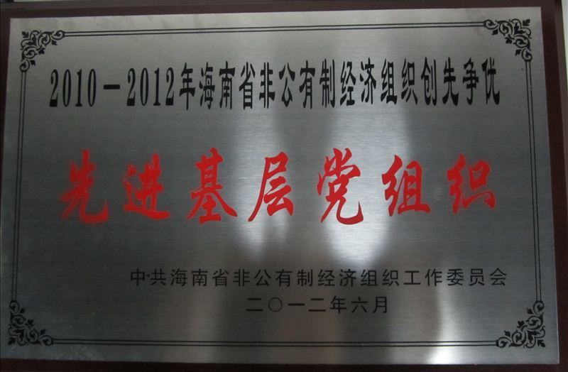在2010-2012年海南省開展的非公有制經濟組織創(chuàng)先爭優(yōu)活動中,華宇集團三亞旅業(yè)黨支部榮獲“先進基層黨組織稱號。728日,中共三亞市委統(tǒng)戰(zhàn)部副部長、市工商聯黨組書記、市非公經濟黨工委書記黃明崇來到三亞華宇旅業(yè)公司,為華宇集團三亞旅業(yè)黨支部授匾。