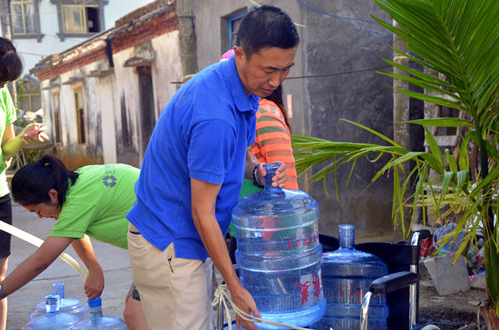 5月29日下午,亞龍灣華宇度假酒店志愿者攜帶生活用品及食品來到中心。在得知中心已停水幾天后,志愿者自告奮勇幫助中心工作人員到幾千米外的地方運(yùn)輸中心日常生活用水。