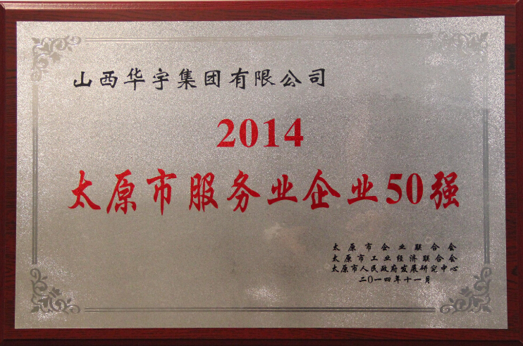 華宇集團(tuán)榮獲“2014山西企業(yè)100強(qiáng)”第48名、“2014山西服務(wù)企業(yè)100強(qiáng)”第14名;“2014太原市企業(yè)50強(qiáng)”第16名、“2014太原市服務(wù)業(yè)企業(yè)”第7名。