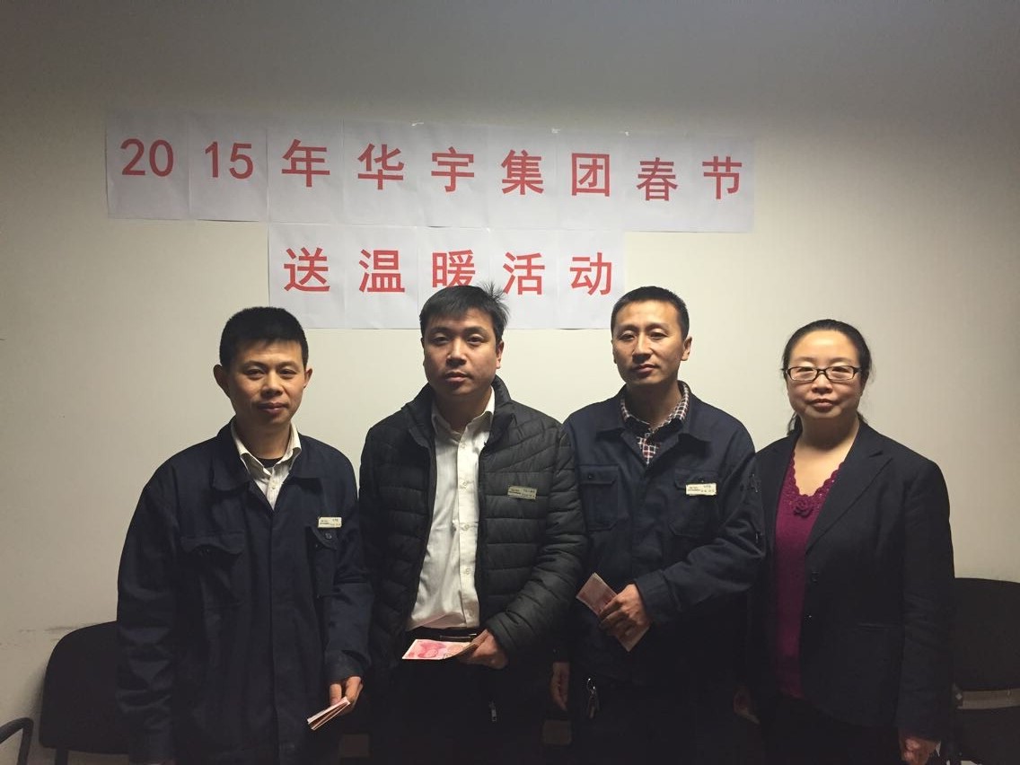 農(nóng)歷羊年春節(jié)將至,為了讓員工度過一個歡快祥和的節(jié)日,感受到華宇的關(guān)懷和大家庭的溫馨,集團黨委工會于25——9日開展了給生活困難的員工送溫暖的活動。5日,集團工會主席崔海燕代表趙華山董事長慰問太原地區(qū)各公司受助員工,將慰問金交到他們手中,并與員工進行座談,向他們送去關(guān)心與祝福,祝愿他們度過一個祥和的節(jié)日。